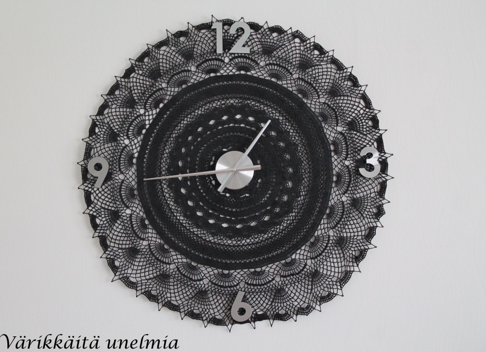 PoistaNo täällähän tämä :D Siitä tuli upea. Tosi kiva nähdä samalla calilla tehtyjä erilaisia asioita. Ja kaupasta ei ikinä löytyisi yhtä upeaa kelloa.